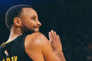 賽后,勇士官方曬出了贏球海報(bào),庫里榮登封面。