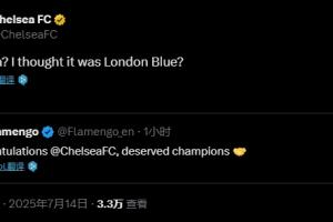 賽后,本屆賽事中唯一一支戰(zhàn)勝了切爾西的球隊弗拉門戈向他們送上了祝賀:“恭喜切爾西,配得上冠軍??”,切爾西官方則回復到:切爾西?不是倫敦藍隊?
