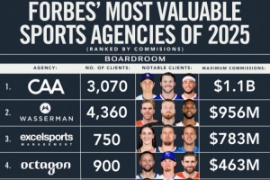 與此同時,Wasserman、Excel和Klutch縮小了差距,通過顯著的傭金增長和有針對性的收購不斷擴(kuò)張。如今,大多數(shù)頂級經(jīng)紀(jì)公司都有私人投資者背景,并向 大學(xué)NIL、教練業(yè)務(wù)和國際市場拓展。