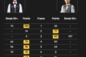 斯諾克蘇格蘭公開賽決賽第一階段:常冰玉連輸5局,2-6落后韋克林