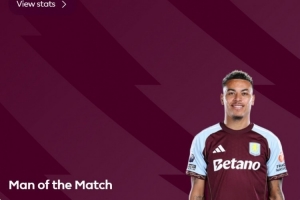 此役羅杰斯梅開二度,幫助維拉取勝,英超官方宣布,他當(dāng)選本場比賽最佳球員。