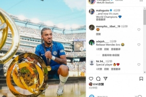 古斯托此役為切爾西踢滿全場(chǎng),賽后他在社交媒體上曬出與獎(jiǎng)杯的合照,配文:“現(xiàn)在它是我們的了,世界冠軍??”