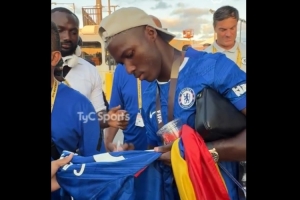 他也在賽后的球場(chǎng)外受到藍(lán)軍球迷的追逐,還為他們?cè)谇蛞律虾灻⒑嫌傲裟睢?/p>