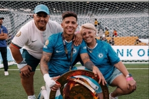 恩佐賽后在社交媒體上曬出女兒咬獎牌的照片,以及與父母的合照,慶祝球隊奪冠。