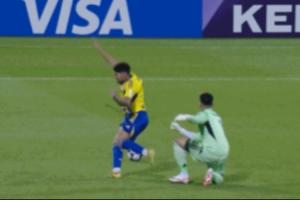 比賽第50分鐘,阿布扎比統(tǒng)一沙姆西逆天大腳掄空,隨后拉倒對(duì)手,VAR介入沙姆西吃到“紅點(diǎn)”套餐,但隨后布拉希米的點(diǎn)球卻打在橫梁上。