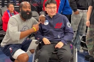 之后,哈登還曾邀請約翰·郝到76人主場看比賽。在隨后的采訪中,哈登的發(fā)言更讓人動容:“約翰·郝是我的幸運符,我們一直保持聯(lián)系,我覺得我有責(zé)任在他生命中給予一點光明?!?/p>