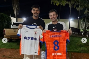 趁著假期,泰山球員馬德魯加回到巴西,他與里奧布里朗蒂市市長(zhǎng)Lucas Foroni等多人一起踢球,Lucas Foroni在個(gè)人社媒曬照,他獲贈(zèng)一件馬德魯加的泰山球衣。