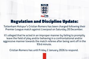 體育資訊12月25日訊 英超第17輪熱刺vs利物浦補(bǔ)時(shí)階段,羅梅羅因被犯規(guī)后的報(bào)復(fù)動(dòng)作被出示第二張黃牌,被罰下場(chǎng)。剛剛英足總發(fā)布公告,稱羅梅羅在紅牌后存在不當(dāng)行為。