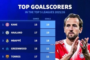 體育資訊12月27日訊 德國轉(zhuǎn)會(huì)市場列出了本賽季五大聯(lián)賽射手榜,凱恩、哈蘭德19球居首。