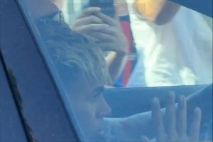 可以看到剛剛成年的亞馬爾坐在副駕駛位招手,與聚集在訓練基地門口的球迷們打招呼。