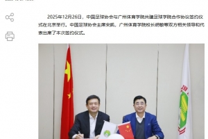 體育資訊12月27日訊 中國(guó)足協(xié)官網(wǎng)發(fā)文,中國(guó)足協(xié)與廣州體育學(xué)院簽署共建足球?qū)W院合作協(xié)議。