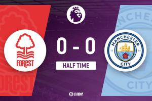 半場(chǎng)-曼城暫0-0諾丁漢森林 雙方半場(chǎng)均0射正曼城控球率近7成