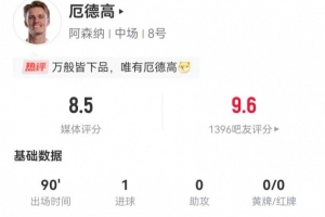體育資訊12月28日訊 阿森納在本輪英超對陣布萊頓,厄德高本場數據如下: