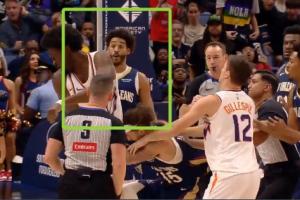 裁判站中間呢!小瓊斯突破被保羅·里德推下 險些沖突被制止