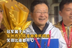 體育資訊12月28日訊 2025“湘超”決賽,永州隊(duì)1-0擊敗常德隊(duì),奪得冠軍。據(jù)“風(fēng)芒新聞”報(bào)道,賽后永州市長(zhǎng)陳愛(ài)林捧杯。