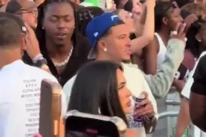 周日兩人共同觀看了Drake的40分鐘演出,此舉引發(fā)球迷強烈不滿。畫面中馬杜埃凱身著白色上衣搭配黑色棒球帽,桑喬則穿著同色系上衣配藍色帽子。