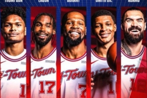 過(guò)去兩場(chǎng)?;鸺氖装l(fā)陣容是:阿門、伊森、杜蘭特、小賈、亞當(dāng)斯。