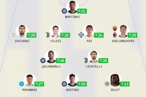 后衛(wèi):拉赫馬尼(那不勒斯,7.27分)、巴斯托尼(國米,7.25分)、歐馬·索勒(烏迪內斯,7.13分)
