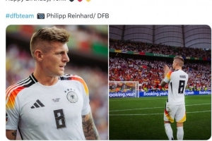 德國隊官方社媒曬出克羅斯效力期間的照片,配文:“生日快樂,托尼!”