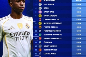 體育資訊1月4日訊 進(jìn)入2026年,歐洲足壇一些球星的合同進(jìn)入最后18個(gè)月,他們所在的俱樂(lè)部需要決定是否在今夏進(jìn)行套現(xiàn)。德國(guó)轉(zhuǎn)會(huì)市場(chǎng)盤(pán)點(diǎn)了2027年合同到期球員身價(jià)榜單,維尼修斯1.4億歐居首,薩卡1.3億歐位居次席,福登則以8000萬(wàn)歐排在第三位。