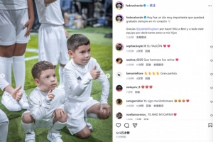 巴爾韋德也在賽后通過(guò)社媒曬出自己的兩個(gè)兒子出任球童的照片,貝林厄姆在賽前儀式環(huán)節(jié)代為照顧他的大兒子Beni。