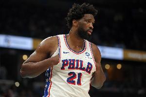 賽季至今,恩比德場(chǎng)均得到22.8分6.8籃板3.4助攻0.6搶斷1.3蓋帽。