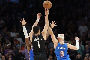 體育資訊1月5日訊 NBA常規(guī)賽,太陽(yáng)在主場(chǎng)以108-105擊敗雷霆。比賽最后時(shí)刻,布克不講理三分絕殺。