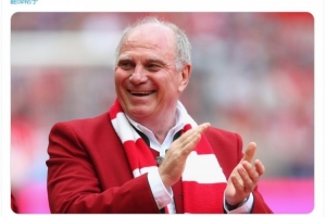 拜仁官方社媒曬出赫內(nèi)斯的照片,配文:“我們的名譽(yù)主席今天迎來(lái)74歲生日,生日快樂(lè)!”