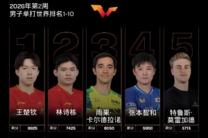 體育資訊1月5日訊 國(guó)際乒聯(lián)官方公布2026年第二周世界排名,王楚欽和孫穎莎繼續(xù)領(lǐng)跑男女單打。