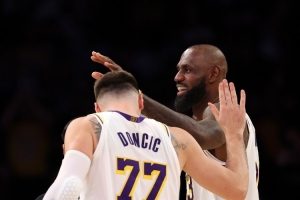 今日湖人球員東契奇(36分)、詹姆斯(26分)、拉拉維亞(26分)連續(xù)第二場(chǎng)比賽同場(chǎng)砍下20+。