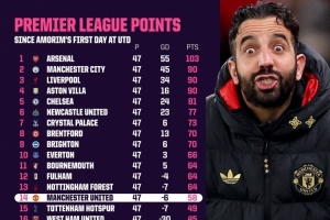 體育資訊1月5日訊 曼聯(lián)官方宣布主帥阿莫林下課,據(jù)Opta統(tǒng)計(jì),阿莫林執(zhí)教曼聯(lián)在英超拿到58分,同期排名英超第14位。