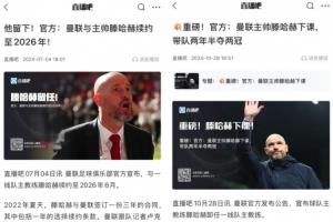 2024年7月,曼聯(lián)續(xù)約滕哈赫,但3個月后就將他解雇。