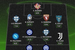 中場:馬泰奧·波利塔諾(那不勒斯,8.02分)、哈坎·恰爾汗奧盧(國際米蘭,8.19分)、盧卡斯·達·庫尼亞(科莫,7.68分)、凱南·伊爾迪茲(尤文圖斯,8.54分)