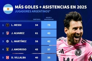體育資訊1月6日訊 德國轉(zhuǎn)會市場統(tǒng)計了阿根廷球員2025年俱樂部+國家隊參與進球數(shù)量,并列出榜單,梅西參與75球斷層居首。