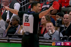 本場比賽火箭主場的計時器一直修不好,無法顯示進攻時間或比賽時間,據(jù)火箭隨隊記者Lachard Binkley報道,現(xiàn)場改為人工提醒時間。