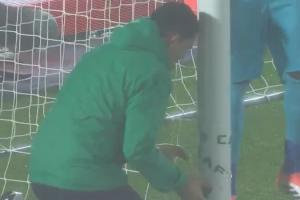 據(jù)RMC報道,本場比賽的賽前,莫桑比克隊這一側(cè)球門右側(cè)的立柱底部球網(wǎng)破了個大洞,官方工作人員用膠帶修補了破洞。