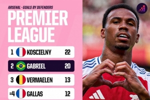 體育資訊1月6日訊 Opta統(tǒng)計(jì)了阿森納隊(duì)史后衛(wèi)英超進(jìn)球數(shù)量,并列出榜單,科斯切爾尼22球居首,加布里埃爾20球次席。