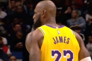 GIF-詹姆斯中投打籃板上沿,24秒違例