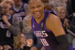 絲毫不怵!森薩博突破殺入內(nèi)線 不怵霍姆格倫防守暴扣打成2+1追平