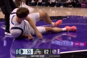 都挺難受!芬尼-史密斯與卡馬拉搶板相撞 前者下場(chǎng)后者嘴唇出血
