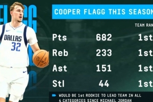 體育資訊1月8日訊 據(jù)統(tǒng)計,本賽季弗拉格有四項數(shù)據(jù)在隊內第一,有望成為繼喬丹之后首位做到這一點的新秀。