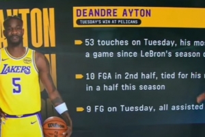 據(jù)統(tǒng)計(jì),在這場(chǎng)比賽中,艾頓全場(chǎng)觸球53次,創(chuàng)下自詹姆斯賽季首秀以來(lái)的單場(chǎng)最高紀(jì)錄。