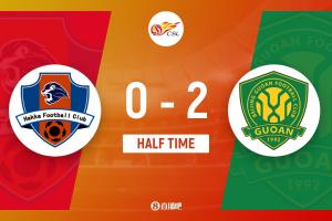 上半場比賽結(jié)束,梅州客家0-2北京國安。