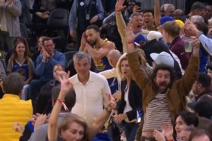 GIF-庫里連續(xù)撤步 三分轟進 但好像踩線了!殺死比賽!