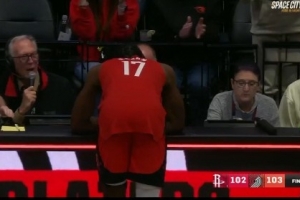 在裁判判定超時(shí)后,伊森非常沮喪,趴在技術(shù)臺很久沒緩過來,他的失望和開拓者主場的歡呼形成了鮮明的對比。