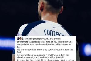 體育資訊01月08日訊 英超第21輪比賽,熱刺客場2-3不敵伯恩茅斯,熱刺后衛(wèi)羅梅羅社媒發(fā)文,其中表示本應(yīng)有其他人站出來發(fā)聲,他們只會在順利時出現(xiàn)去說一些謊言。