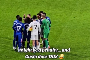 由于犯規(guī)地點在禁區(qū)附近,切爾西邊衛(wèi)古斯托在兩隊球員與裁判爭執(zhí)時偷偷破壞點球點,以防被判罰點球,最終裁判認定犯規(guī)在禁區(qū)外,判罰了任意球。