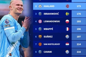 體育資訊1月8日訊 1-1戰(zhàn)平布萊頓的比賽,曼城射手哈蘭德打進(jìn)1球,這讓他在俱樂部的進(jìn)球數(shù)達(dá)到150球。德國轉(zhuǎn)會市場盤點(diǎn)了5大聯(lián)賽最快達(dá)成150球里程碑的球員,C羅149場居首,哈蘭德173場次之。