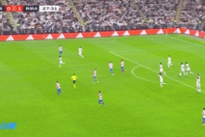 比賽第28分鐘,卡雷拉斯右路的積極逼搶創(chuàng)造出了一個(gè)好機(jī)會(huì),羅德里戈插上到了禁區(qū)內(nèi),扣過(guò)防守但隨后的射門(mén)被奧布拉克撲出!