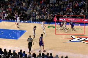 常規(guī)時(shí)間還剩1分43秒時(shí),爵士球員基昂特·喬治走步違例(運(yùn)球前移動(dòng)了中軸腳),裁判漏判;